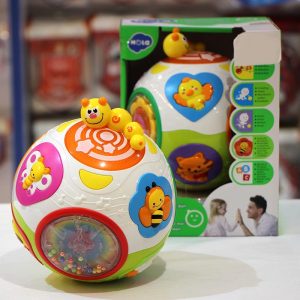 این محصول، یک توپ موزیکال و حرکتی برای کودکان بالای شش ماه می باشد. توپ با رنگ های غیر شیمیایی رنگ آمیزی شده است و دارای رنگ های شاد است تا کودک را جذب خود کند. چراغ ها در حال حرکت روشن می شوند و چشمک می زنند.