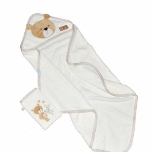 ست حوله دو تکه رز برن طرح bear & kite شامل یک عدد حوله‌ی دورپیچ کلاه دار و یک لیف است که از لوازم کاربردی برای استحمام نوزاد به حساب می آید.