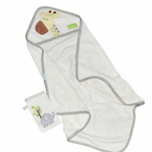 ست حوله دو تکه رز برن طرح brooks jungle شامل یک عدد حولهی دورپیچ کلاه دار و یک لیف است که از لوازم کاربردی برای استحمام نوزاد به حساب می آید.