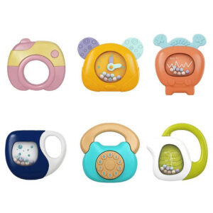 این مجموعه شامل شش قطعه متفاوت است که هرکدام کاربرد خاص خود را دارند. تنوع در شکل و رنگ، باعث میشود کودک بهمرور قدرت تشخیص رنگها و تمرکز بصری خود را تقویت کند. صدای کنترلشده جغجغهها نهتنها آزاردهنده نیست، بلکه حس شنوایی نوزاد را به شکلی ملایم تحریک میکند و او را به بازی فعالتر ترغیب مینماید.